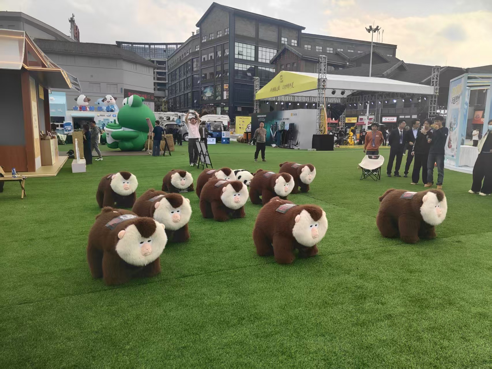 “妈妈,你看,那不是黔灵山公园网红狒狒‘小老费’吗,它怎么也来啦?!”11岁的成都游客小鹏兴奋地喊着,好奇地盯着眼前的一只毛茸茸的四足机器狗。这只仿照“小老费”原型制作的机器狗正在草坪上前后移动,憨憨的样子,惹人喜爱!