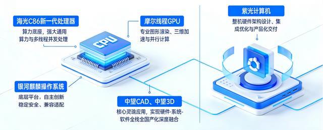据介绍,该一体机集成海光 CPU 与摩尔线程 GPU,搭载银河麒麟操作系统,并预装中望 CAD 与中望 3D,实现了从芯片、操作系统到应用软件的全链路自主可控,为航空航天、高端装备等关键领域提供了一套完整、安全、高效的国产工业设计解决方案。
