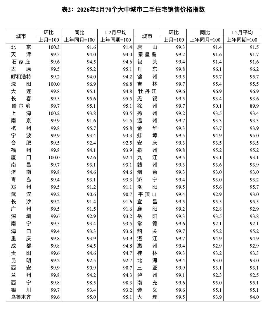 2月份商品住宅销售价格环比降幅继续收窄——国家统计局城市司首席统计师王中华解读2026年2月份商品住宅销售价格变动情况统计数据